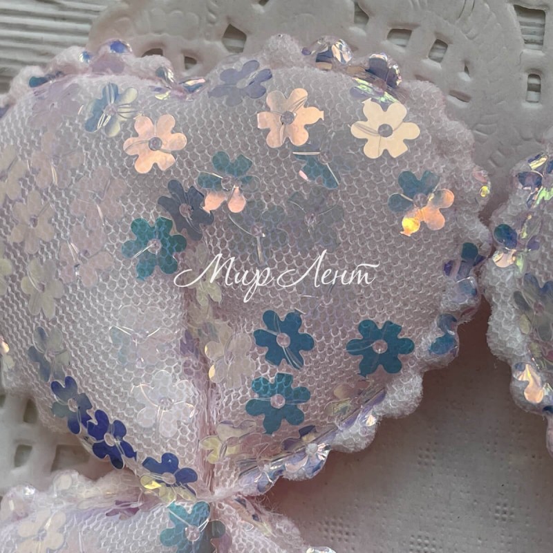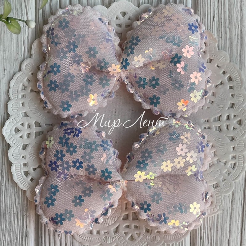 Аппликация бант с паетками-цветочками (большой), 9,5х6,5 см, светло-розовый, упаковка 20 шт.