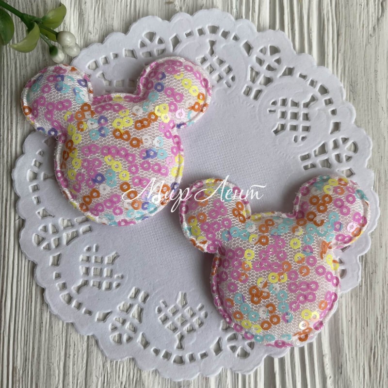 Аппликация Микки с паетками, 5,6х5,3 см, малиново-бирюзовая, упаковка 20 шт.