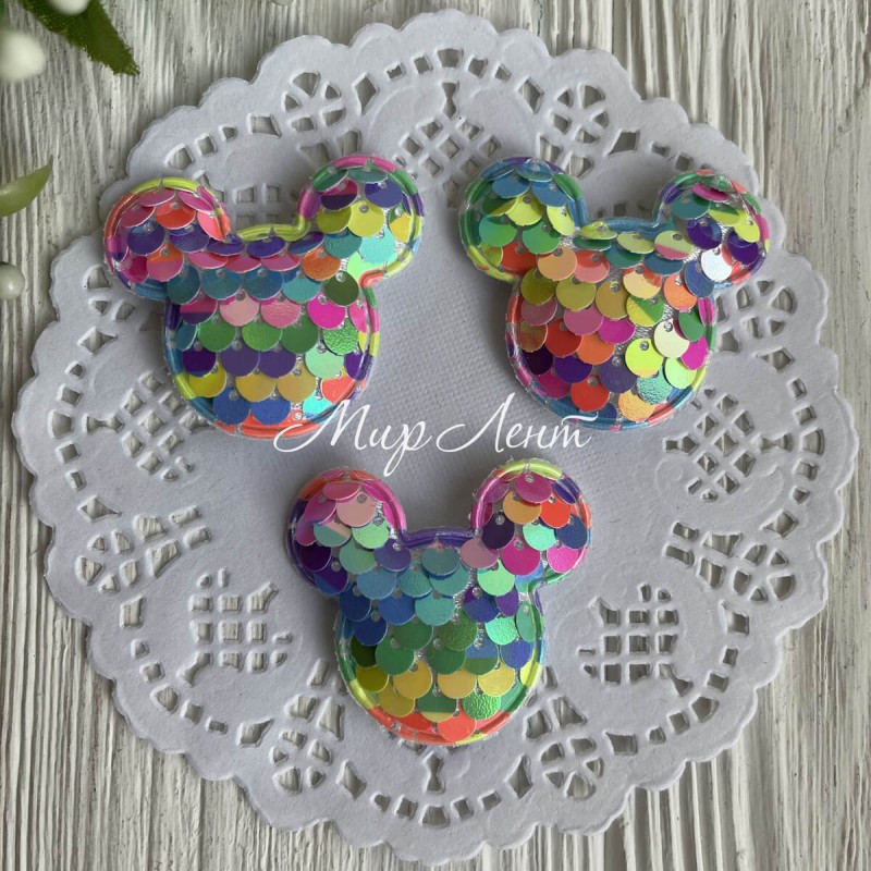 Аппликация Микки с паетками (маленькая), 4,2х3,6 см, яркий микс, упаковка 20 шт.
