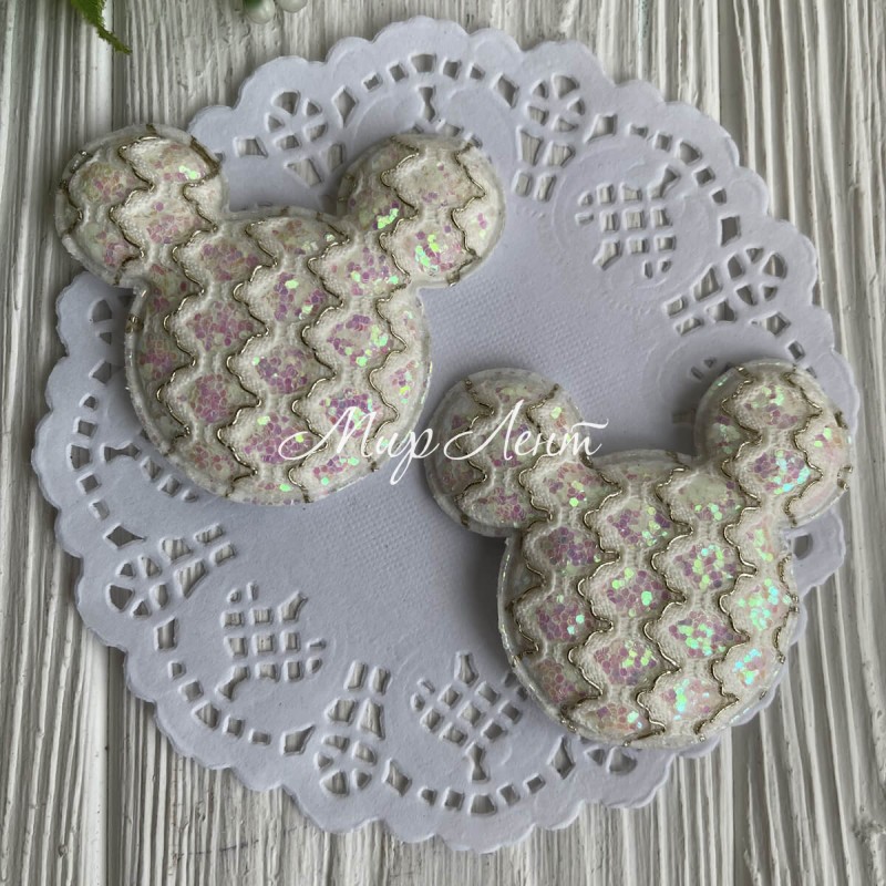 Аппликация Микки с узором, 6х5,5 см, белая, упаковка 20 шт.