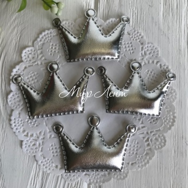 Аппликация/патч, корона (экокожа), 3,6 х 3,8 см, серебро, упаковка 20 шт.