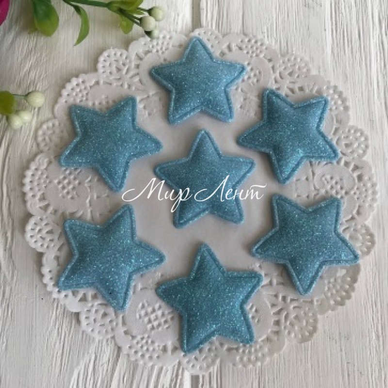 Аппликация/патч, звездочка (глиттер), 3,5 см, светло-бирюзовый, упаковка 25 шт.