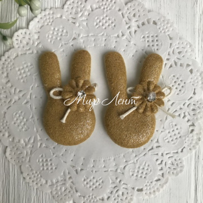 Аппликация тканевая кролик блеск, 5 см, горчичный, упаковка 20 шт.