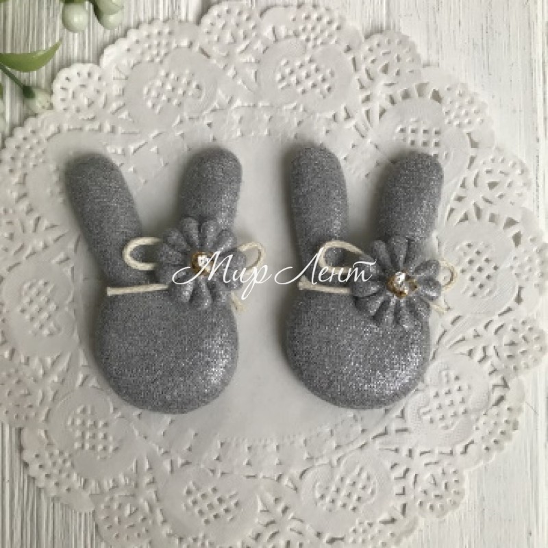 Аппликация тканевая кролик блеск, 5 см, серый, упаковка 20 шт.