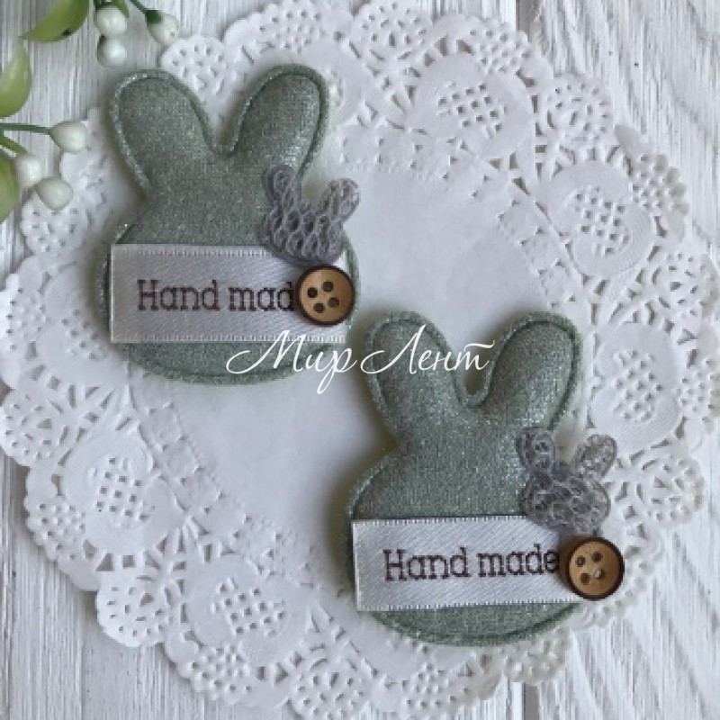 Аппликация тканевая зайчик hand made, 5х4 см, оливково-серый, упаковка 20 шт.