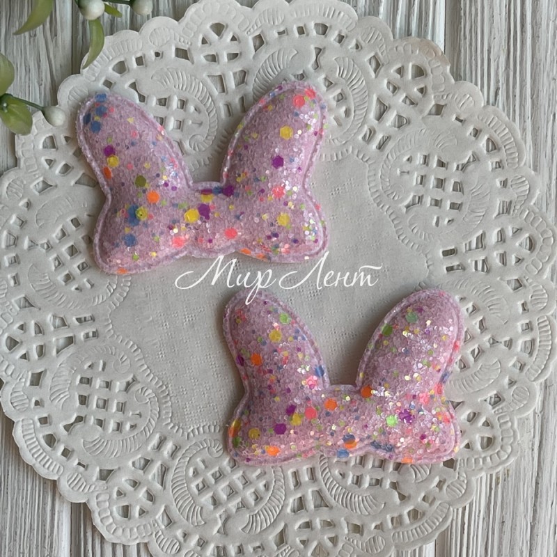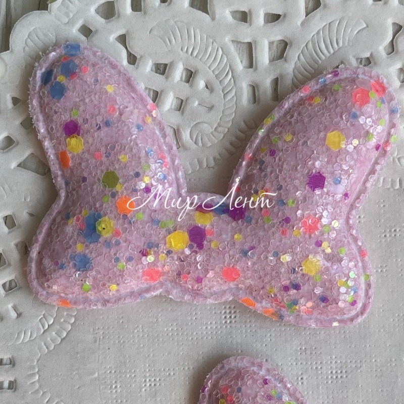 Аппликация ушки-бантик с цветной мозаикой, 5,5х4,2 см, светло-розовая, упаковка 20 шт.