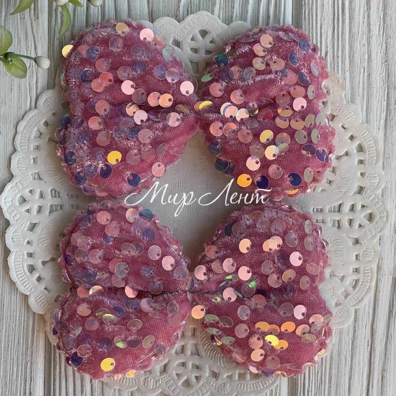 Аппликация велюровый бант с паетками (большой), 9,5х6,5 см, розово-пудровый, упаковка 20 шт.