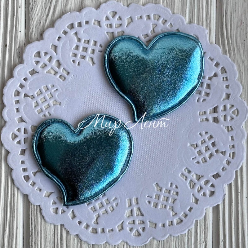 Аппликация/патч, сердечко (экокожа), 4,7 см, бирюзовый, упаковка 20 шт.