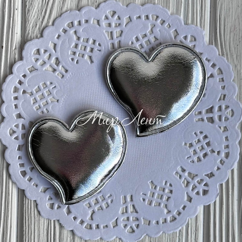 Аппликация/патч, сердечко (экокожа), 4,7 см, серебро, упаковка 20 шт.