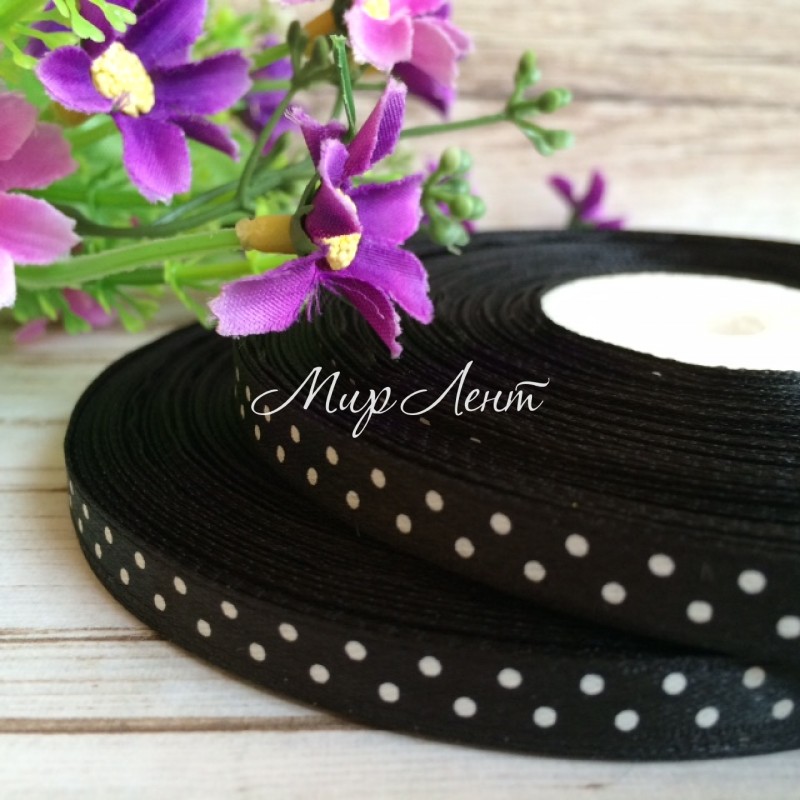 Атлас 0,6 см горох, черный, рулон 45 м