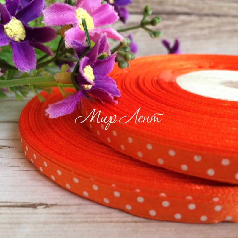 Атлас 0,6 см горох, оранжевый, рулон 45 м
