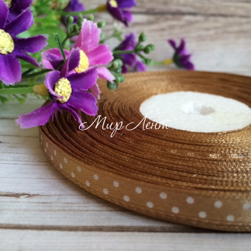 Атлас 0,6 см горох, светло-коричневый, рулон 45 м