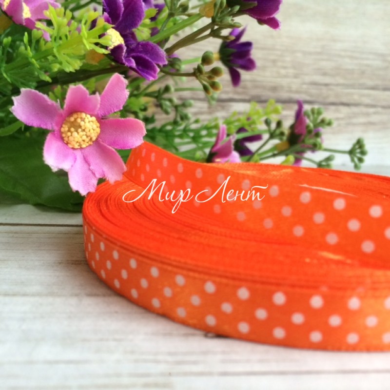 Атлас 0,9 см горох, оранжевый, рулон 45 м