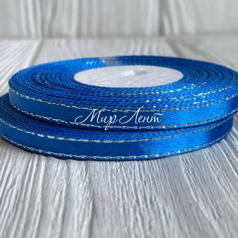 Атлас 0,6 см люрекс серебро, темно-синий, рулон 33 м
