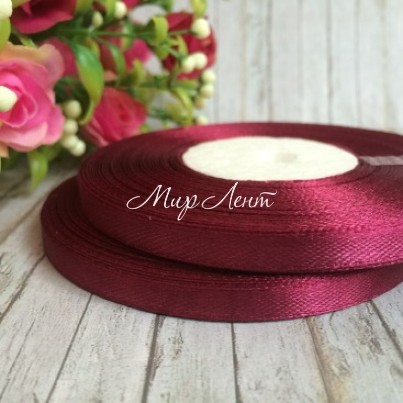 Атлас 0,6 см, вишневый, рулон 33 м, УПАКОВКА 10 рулонов