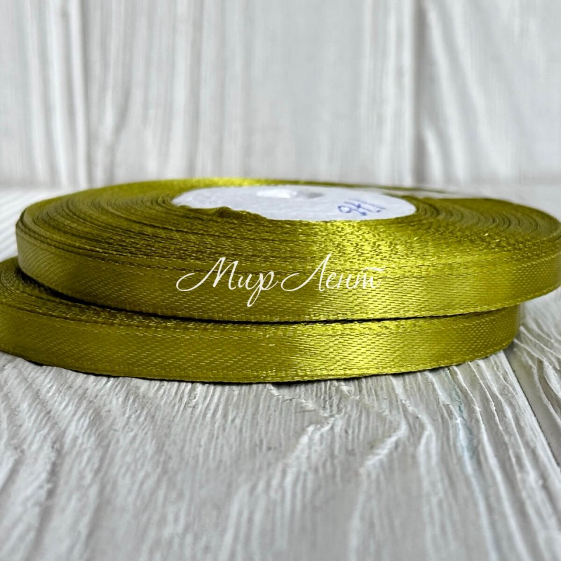 Атлас 0,6 см, ярко-оливковый, рулон 33 м
