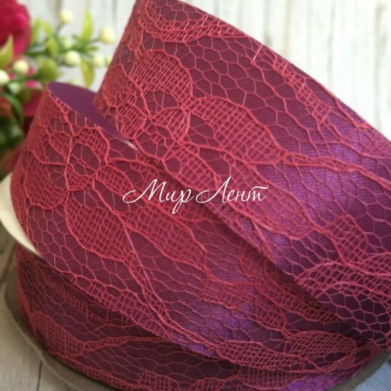 Атлас 2,5 см, кружево, баклажановый, рулон 17,5 м
