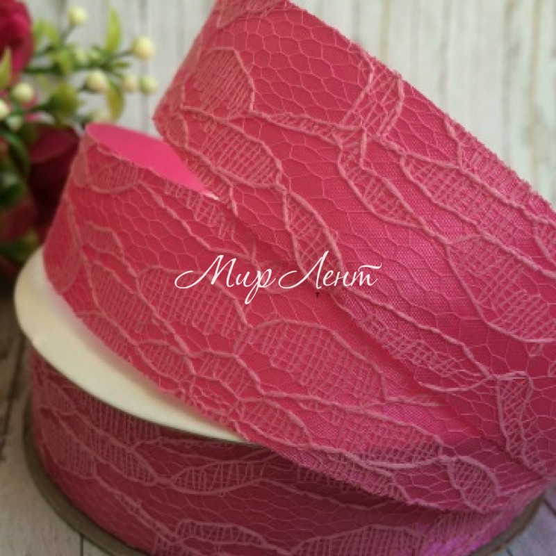 Атлас 2,5 см, кружево, светло-малиновый, рулон 17,5 м
