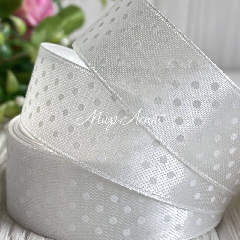 Атлас 2,5 см горох, айвори, рулон 18 м