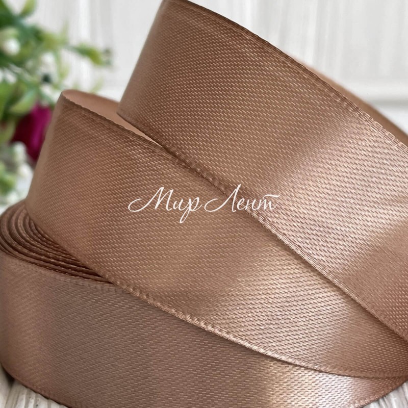 Атлас 2,5 см, кофейно-бежевый, рулон 33 м