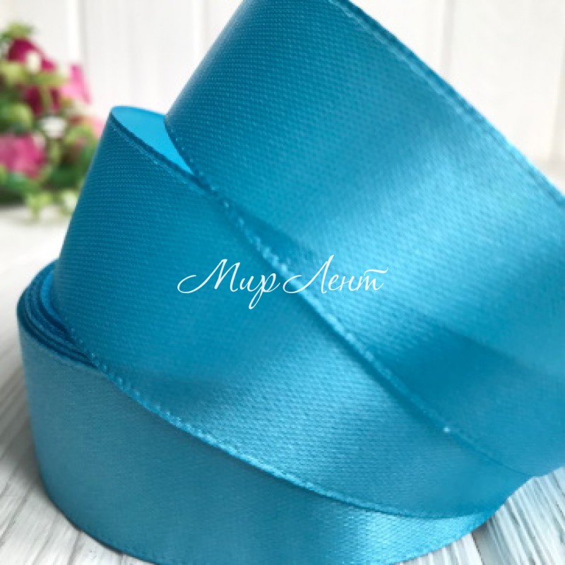 Атлас 2,5 см, небесно-голубой, рулон 33 м, УПАКОВКА 5 рулонов