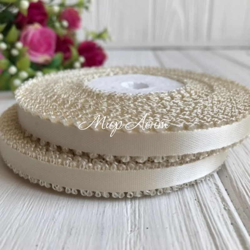 Лента очень хорошего качества. Атлас плотный, двухсторонний, с петельками по краю.