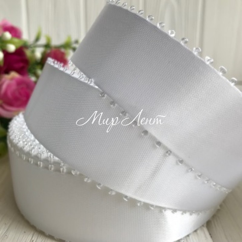 Атлас двухсторонний с петельками 2,5 см, белый, рулон 20 ярдов
