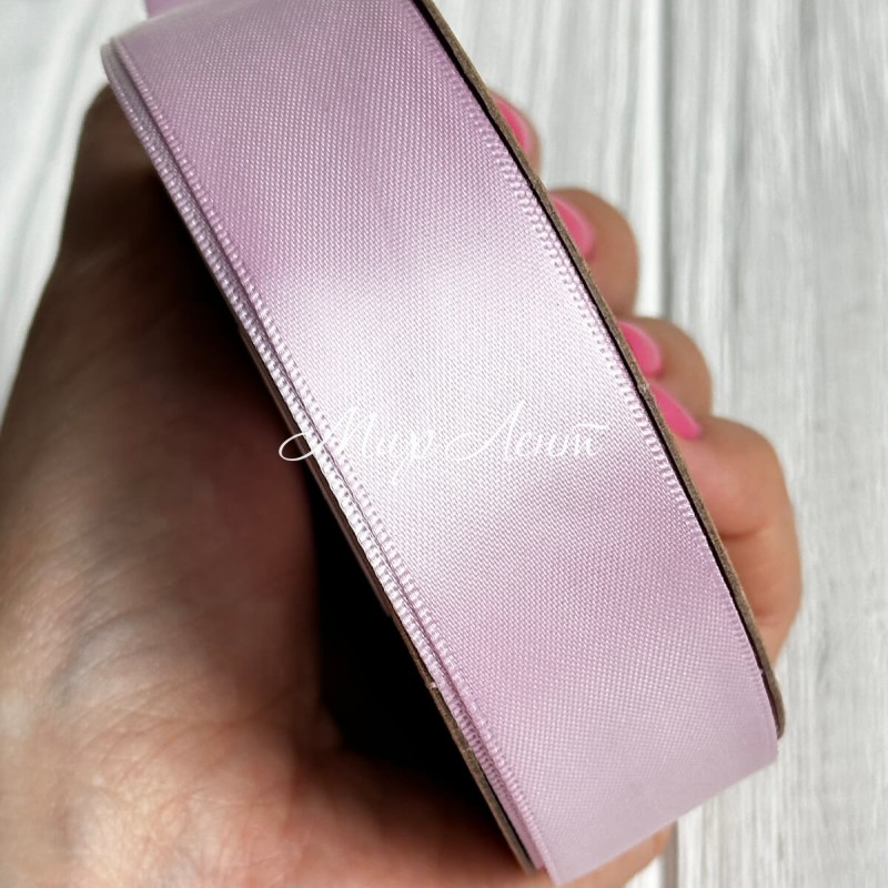 Атлас двусторонний (премиум), 2,5 см, нежно-розово-сиреневый, рулон 23 м