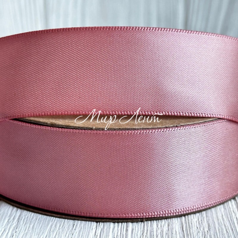 Атлас двусторонний (премиум), 2,5 см, пудровый, рулон 23 м