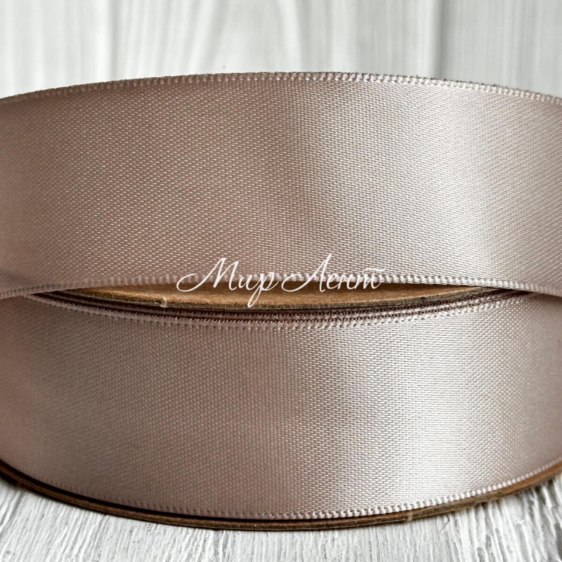 Атлас двусторонний (премиум), 2,5 см, серо-бежевый, рулон 23 м