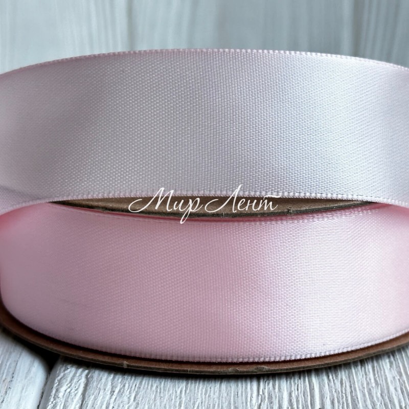 Атлас двусторонний (премиум), 2,5 см, светло-розовый, рулон 23 м