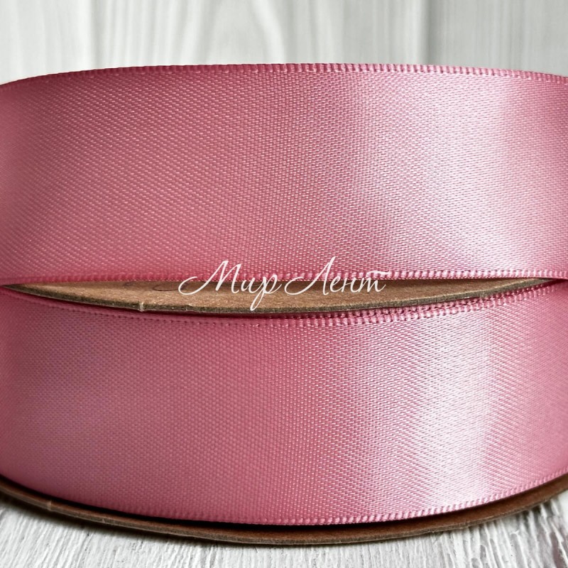 Атлас двусторонний (премиум), 2,5 см, ванильно-пудровый, рулон 23 м