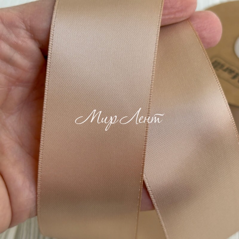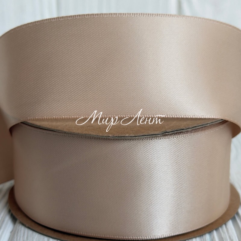 Атлас двусторонний (премиум), 3,8 см, бежевый, рулон 23 м