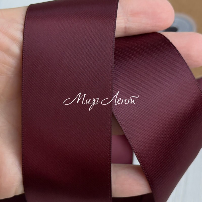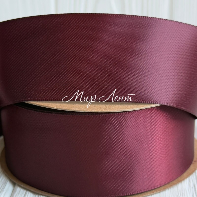Атлас двусторонний (премиум), 3,8 см, бургунди, рулон 23 м