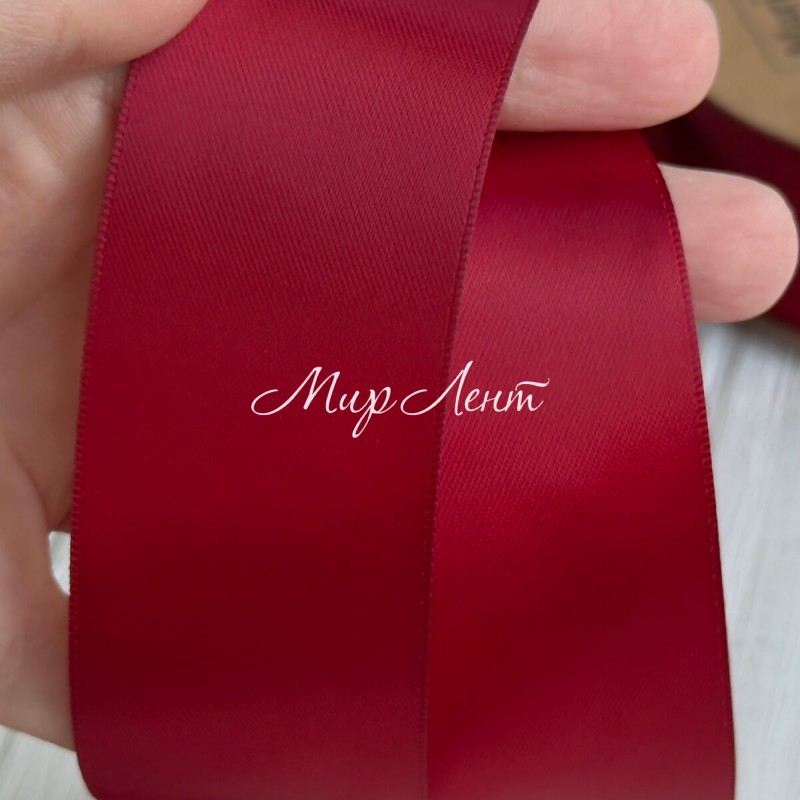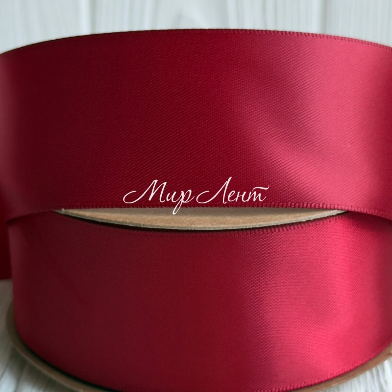 Атлас двусторонний (премиум), 3,8 см, красный бархат, рулон 23 м