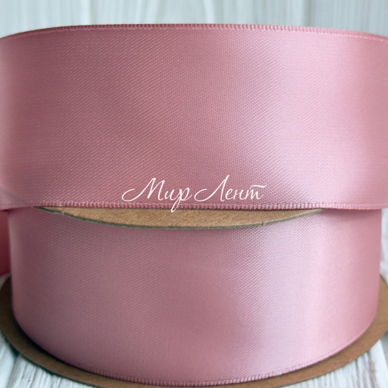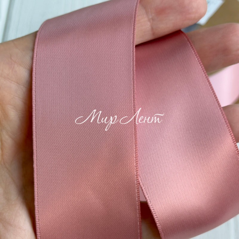 Атлас двусторонний (премиум), 3,8 см, пудровый, рулон 23 м