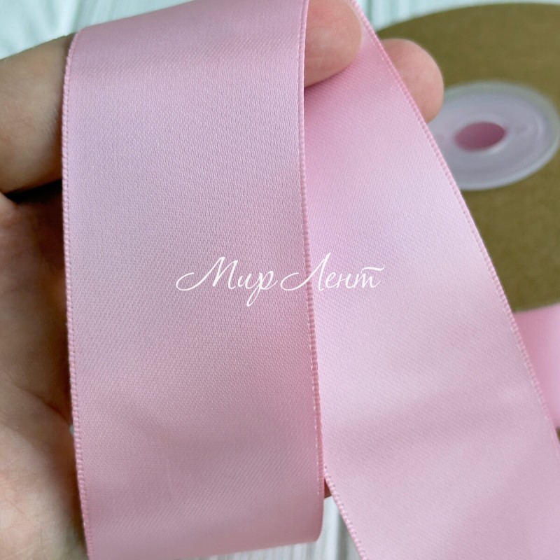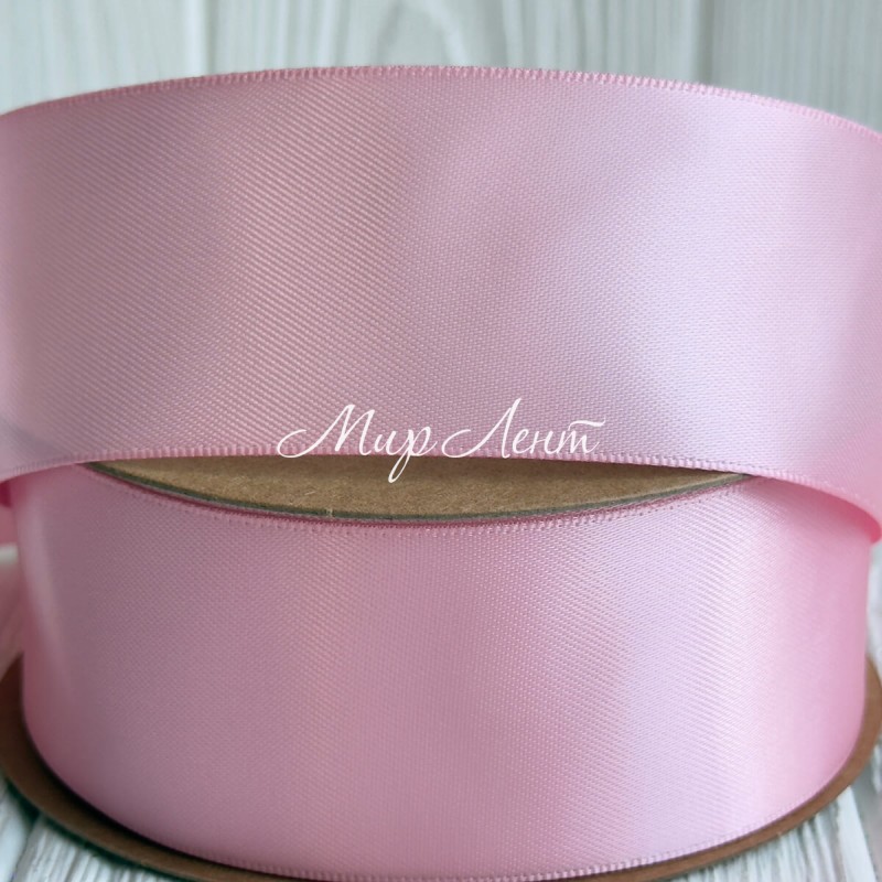 Атлас двусторонний (премиум), 3,8 см, светло-розовый, рулон 23 м