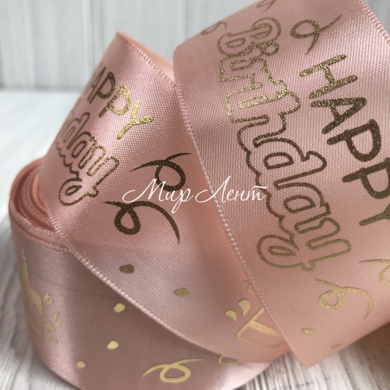 Атлас Happy Birthday, 4 см, светло-пудровый, рулон 18 м