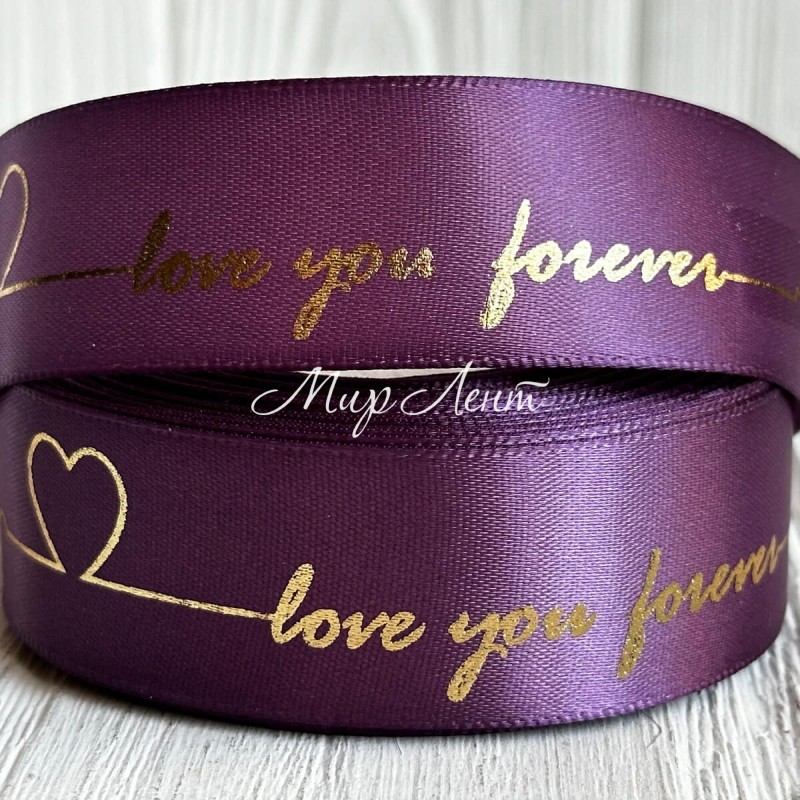 Атлас Love you forever, 2,5 см, фиалковый, рулон 18 м