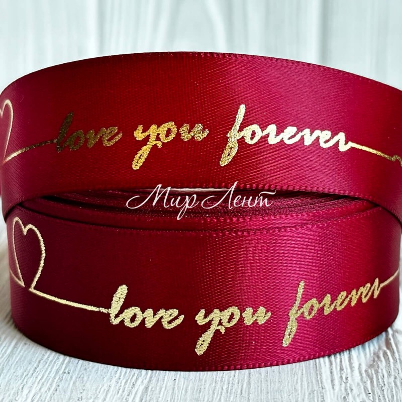 Атлас Love you forever, 2,5 см, красный бархат, рулон 18 м