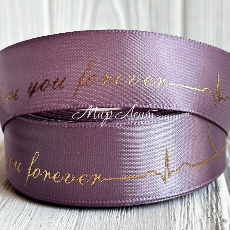 Атлас Love you forever, 2,5 см, лавандовый, рулон 18 м