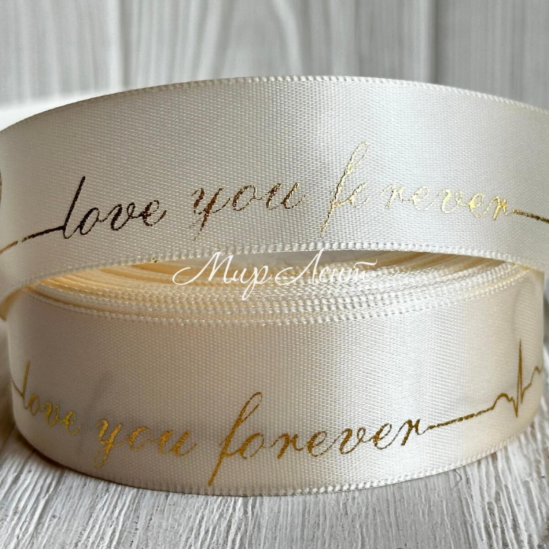 Атлас Love you forever, 2,5 см, молочный, рулон 18 м