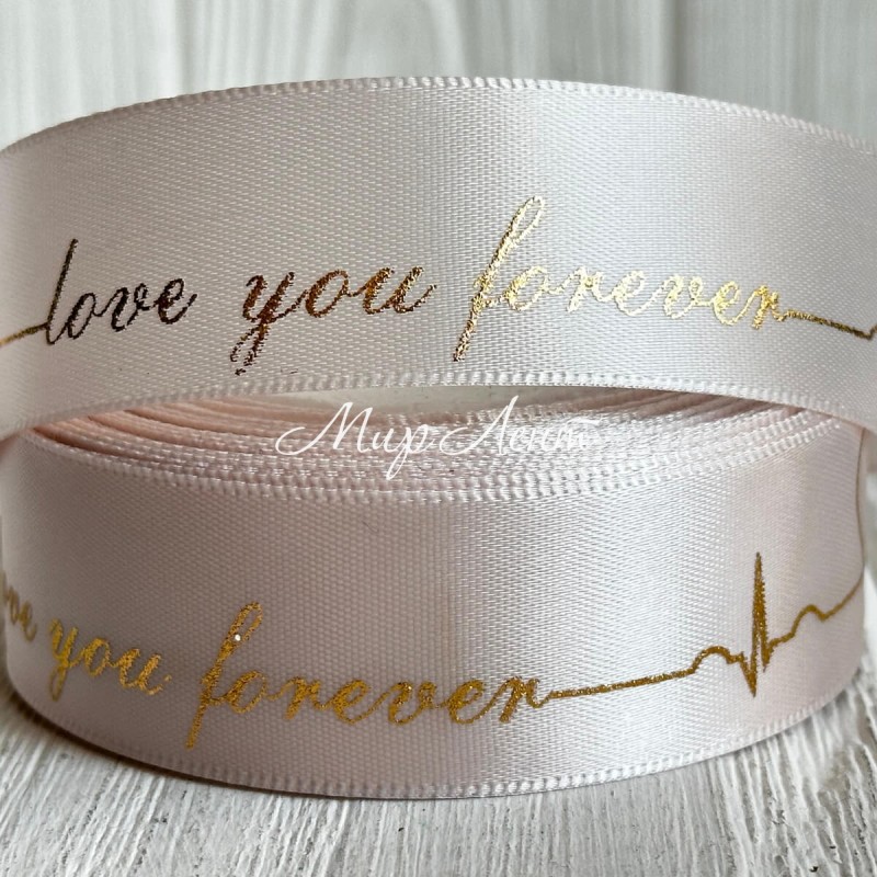 Атлас Love you forever, 2,5 см, ванильный, рулон 18 м