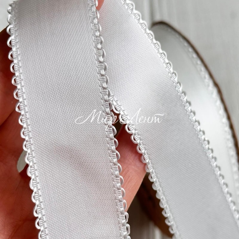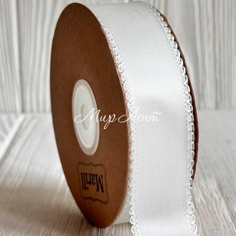 Атлас двусторонний с кантом, 2,5 см, айвори, рулон 18,5 м