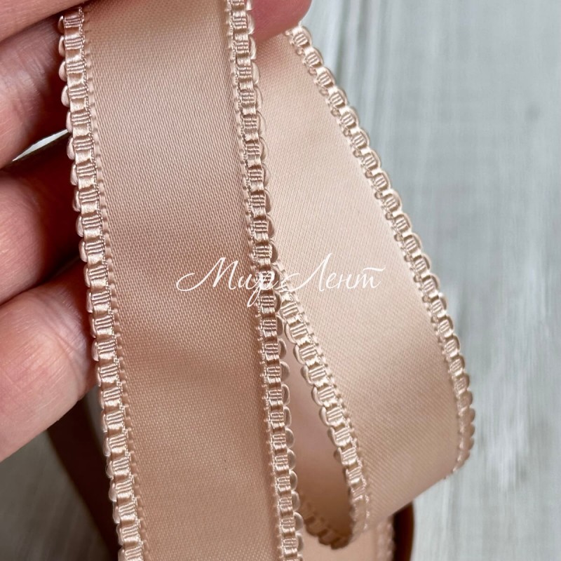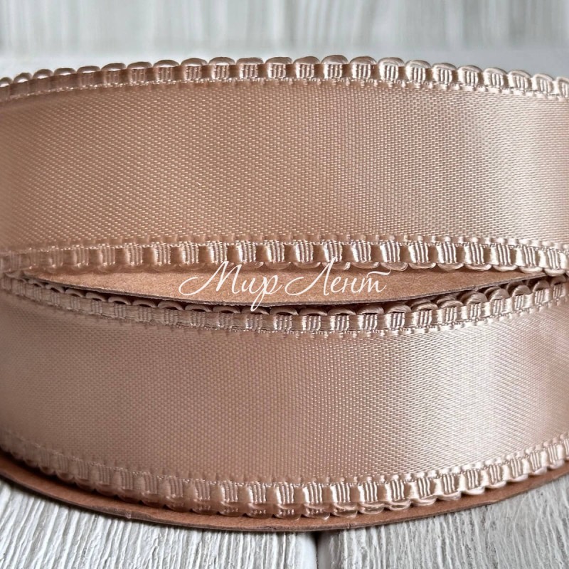 Атлас двусторонний с кантом, 2,5 см, бежевый, рулон 18,5 м