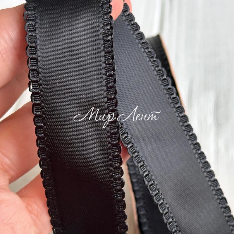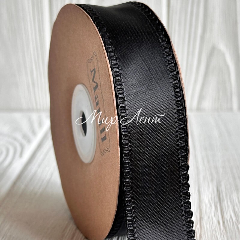 Атлас двусторонний с кантом, 2,5 см, черный, рулон 18,5 м