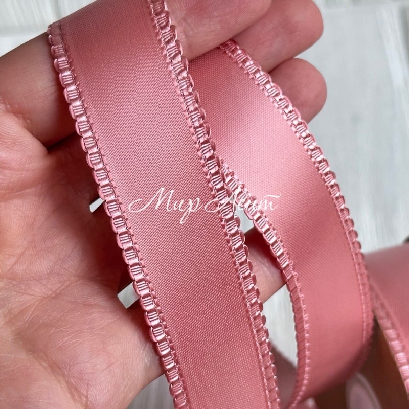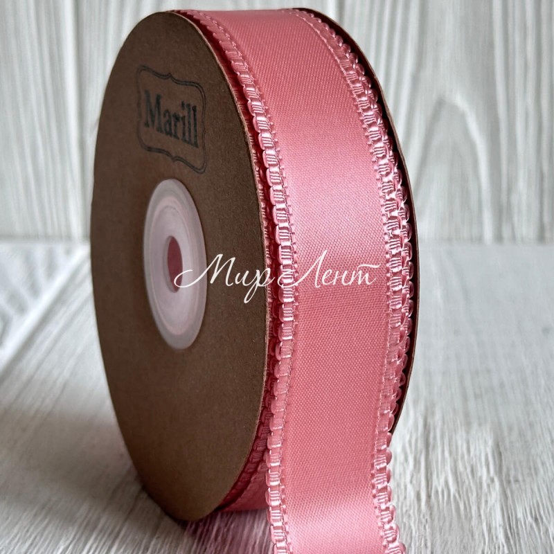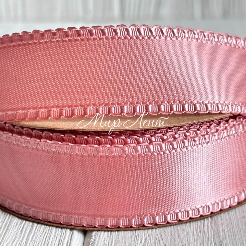 Атлас двусторонний с кантом, 2,5 см, пудровый, рулон 18,5 м