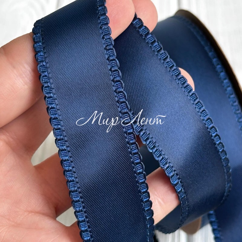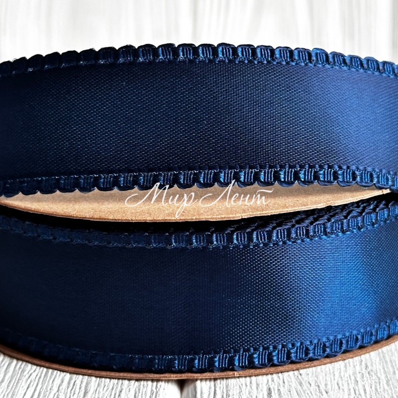 Атлас двусторонний с кантом, 2,5 см, сапфировый, рулон 18,5 м