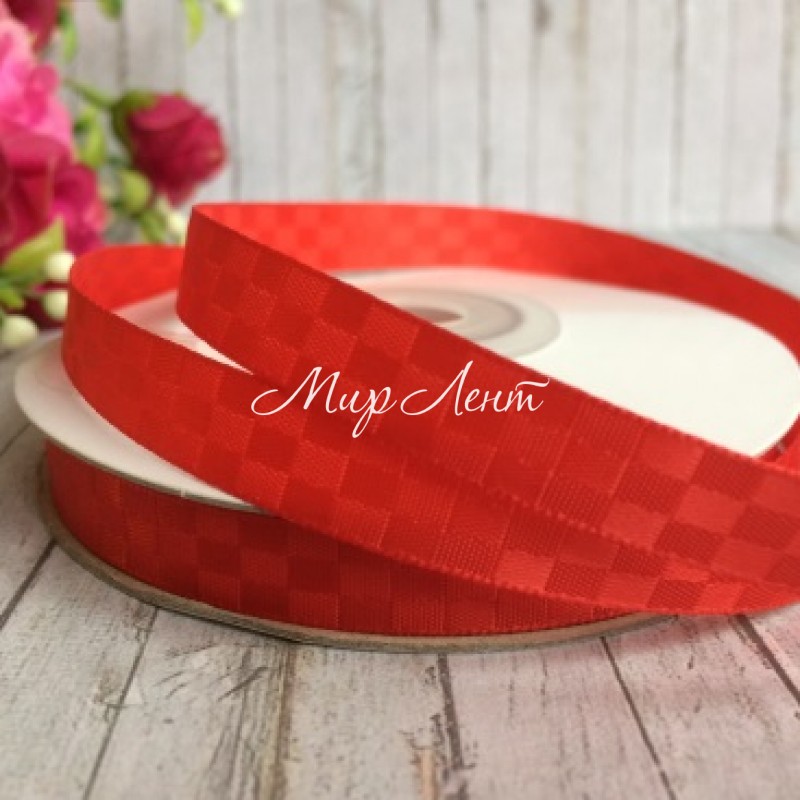 Атлас шахматка, 1 см, красный, рулон 23 м