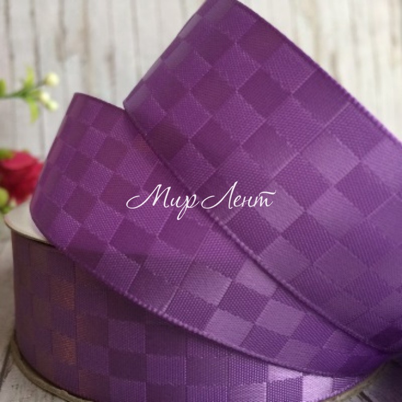 Атлас шахматка, 2,5 см, светло-фиолетовый, рулон 23 м